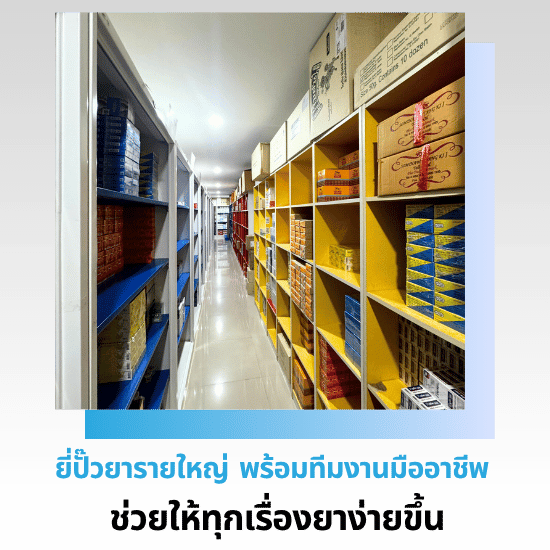 โกดังยา กรุงเทพฯ โกดังยา กรุงเทพฯ ศูนย์กลางยาและเวชภัณฑ์ครบวงจรในกรุงเทพฯ ในฐานะยี่ปั๊วยารายใหญ่และผู้นำด้านการจัดจำหน่ายผลิตภัณฑ์สุขภาพกว่าทศวรรษ ศูนย์กลางยาและเวชภัณฑ์ที่คุณไว้วางใจในกรุงเทพมหานคร ด้วยศักยภาพและประสบการณ์ที่เราสั่งสมมา เราพร้อมสนับสนุนทุกร้านขายยา คลินิก และสถานพยาบาล ให้เข้าถึงสินค้าคุณภาพสูงได้อย่างสะดวกและรวดเร็ว คลังสินค้าขนาดใหญ่ใจกลางกรุงเทพฯ เราเป็นโกดังยาขนาดใหญ่ที่มีความพร้อมสูง สามารถรองรับความต้องการยาแผนปัจจุบัน ยาสามัญประจำบ้าน ยาอันตราย ยาแผนโบราณ วิตามิน ผลิตภัณฑ์เสริมอาหาร และเวชสำอางรวมกว่า 5,000 รายการ ให้คุณมั่นใจว่ามีสินค้าครบถ้วนทุกความต้องการ สินค้าคุณภาพ ของแท้ 100% เราจำหน่ายเฉพาะยาและเวชภัณฑ์ของแท้ 100% ที่ส่งตรงจากผู้ผลิตที่ได้รับการรับรองมาตรฐานเท่านั้น พร้อมเอกสารกำกับถูกต้องครบถ้วน เพื่อความปลอดภัยและคุณภาพสูงสุดสำหรับผู้บริโภค ระบบจัดการสต็อกทันสมัย อายุยาวหายห่วง โกดังยาของเรามีระบบควบคุมจัดการสต็อกที่ทันสมัยและมีประสิทธิภาพสูง ทำให้สินค้าหมุนเวียนรวดเร็ว คุณจึงมั่นใจได้ว่าสินค้าทุกชิ้นที่ได้รับมีอายุยาวนาน พร้อมสำหรับการจำหน่ายและการใช้งาน บริการจัดส่งรวดเร็ว แม่นยำ ทั่วประเทศ ด้วยทีมงานมืออาชีพและระบบขนส่งที่แข็งแกร่ง เราพร้อมจัดส่งสินค้าจากโกดังยาของเราในกรุงเทพฯ ไปยังทุกพื้นที่ทั่วประเทศไทย ได้อย่างรวดเร็ว ตรงเวลา และแม่นยำ เพื่อให้ลูกค้าได้รับสินค้าทันใช้และทันขาย ที่ปรึกษาเพื่อการเติบโตของธุรกิจ เราไม่ได้เป็นเพียงผู้จำหน่าย แต่ยังพร้อมให้คำแนะนำปรึกษาสำหรับผู้ที่สนใจเปิดร้านขายยา หรือต้องการพัฒนาธุรกิจให้ได้มาตรฐาน GPP (Good Pharmacy Practice) เพื่อการลงทุนที่คุ้มค่าและยั่งยืน มั่นใจในทุกการบริการ มุ่งมั่นที่จะเป็น "พันธมิตรที่มั่นคง เคียงข้างธุรกิจคุณ" ด้วยความซื่อสัตย์ ธรรมาภิบาล และการบริการที่เป็นเลิศ เราพร้อมเป็นโกดังยาที่คุณวางใจในกรุงเทพฯ และทั่วประเทศ